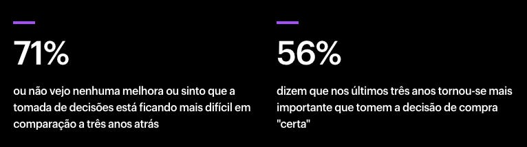 Esse sentimento não é uma novidade e tem um nome: paralisia decisória. E essa sensação de sobrecarga na hora de fazer uma certa compra não sou só eu que sinto: Segundo uma pesquisa da Accenture de 2024,