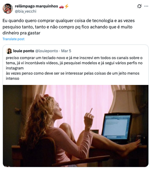 Outra hipótese que pensei como consequência dessa fadiga de escolha é todo mundo estar consumindo as mesmas coisas. Com frequência colocamos a culpa apenas nas redes sociais e nos algoritmos, mas apesar de serem totalmente culpados, não acho que sejam os únicos. Acho que de certa forma, ter chancelas de quem a gente admira ou conhece consumindo algo é um atalho que usamos para tentar diminuir essa fadiga que as buscas infinitas causam.